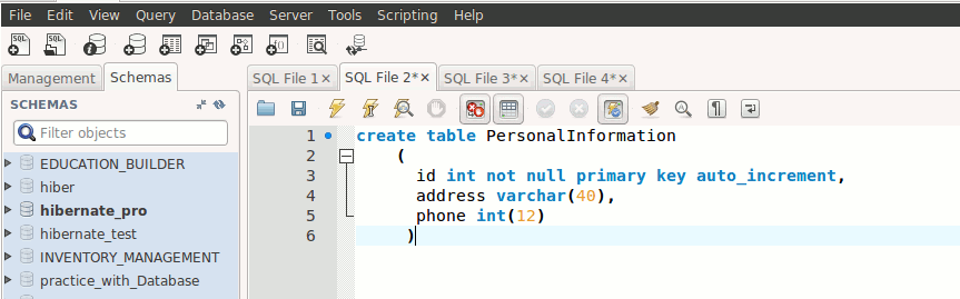 Step 8. Now create table in the database which we create the connection in the hibernate.cfg.xml.