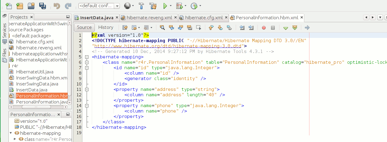 After the creation the hibernate.cfg.xml file we see the below given situation.