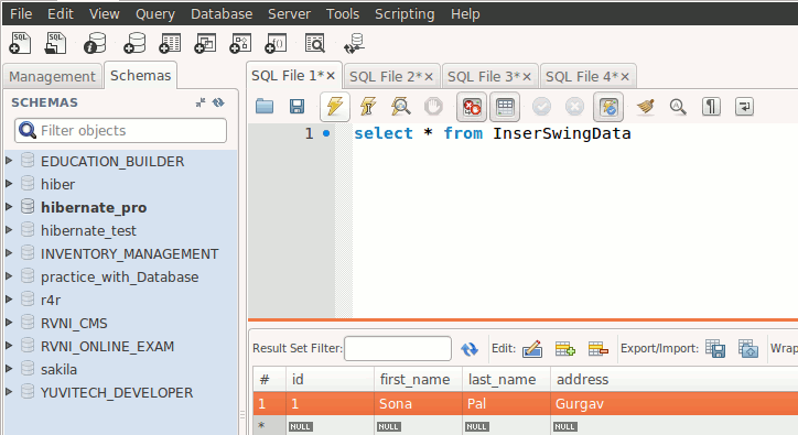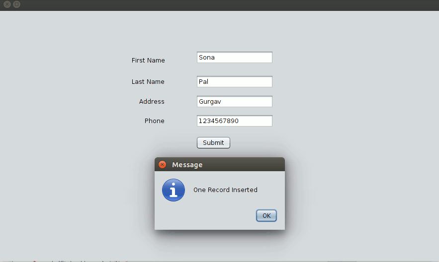 Insert data into database using Swing in Hibernate: In the Hibernate we can create a application through the swing. Hibernate can work with the swing also. As we shown in the given below example. For creating the application we need to follow some basic step which is given below: