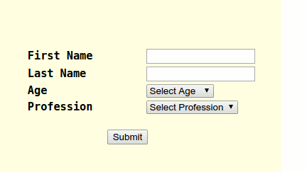 In Below Image When project runs then we see open a browser. In that we can insert the value as required in the text field and label ask to fill. Then click on Submit.
