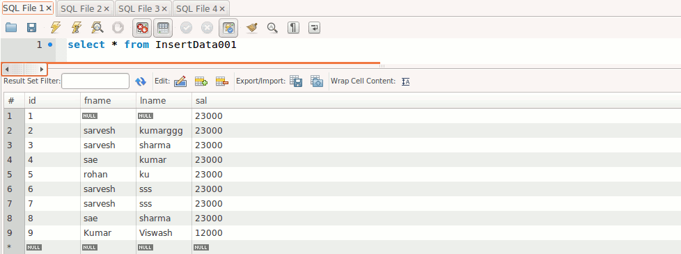 1. create table InsertData001